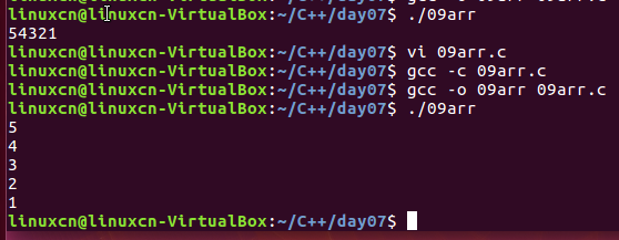 1 /* 2 数组练习 3 */ 4 #include <stdio.h> 5 int main() { 6 int arr[5], loop = 0; 7 for (loop = 0; loop <= 4; loop++) { 8 arr[loop] = loop + 1; 9 } 10 for (loop = 4; loop >= 0; loop--) { 11 printf("%d ", arr[loop]); 12 } 13 printf("\n"); 14 return 0; 15 }