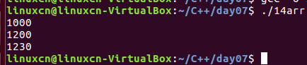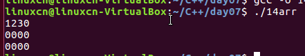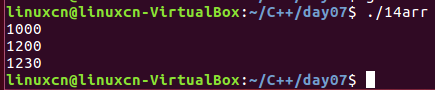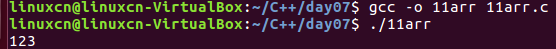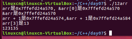 1 /* 2 数组名称的使用 3 */ 4 #include <stdio.h> 5 int main() { 6 int arr[5] = {1, 2, 3, 4, 5}; 7 int loop = 0; 8 printf("arr是%p,&arr[0]是%p\n", arr, &arr[0]); 9 //arr = 1; 错误 10 printf("&arr是%p\n", &arr); 11 printf("arr + 1是%p,&arr + 1是%p\n", arr + 1, &arr + 1); 12 *(arr + 3) = 13; 13 printf("arr[3]是%d\n", arr[3]); 14 for (loop = 0; loop <= 4; loop++) { 15 printf("%d ", *(arr + loop)); 16 }vi 17 printf("\n"); 18 return 0; 19 }
