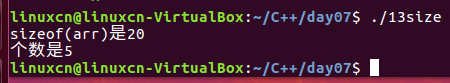 1 /* 2 sizeof练习 3 */ 4 #include <stdio.h> 5 int main() { 6 int arr[] = {1, 2, 3, 4, 5}; 7 printf("sizeof(arr)是%d\n", sizeof(arr)); 8 printf("个数是%d\n", sizeof(arr) / sizeof(arr[0])); 9 return 0; 10 }