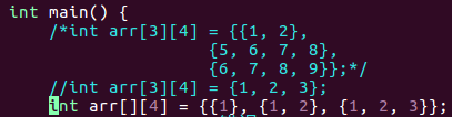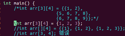 int arr[][4] , 空的在列数中以0代替;
