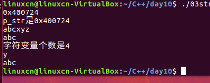 /*字符串练习*/#include<stdio.h>int main(){char*p_str ="abc";char ch ='x';printf("%p\n","abc");printf("%c\n",*p_str);printf("%s\n", p_str);p_str =&ch;printf("%s\n", p_str);//不可以当字符串使用return0;}