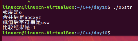 /*字符串函数练习*/#include<stdio.h>#include<string.h>int main(){char str[20]="abc";printf("长度是%d\n", strlen("abcdef"));printf("合并后是%s\n", strcat(str,"xyz"));printf("赋值后字符串是%s\n", strcpy(str,"uvw"));printf("比较结果是%d\n", strcmp("abc","abd"));return0;vi}