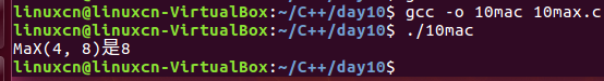/*宏练习*/#include<stdio.h>#define MAX(n,m) n > m ? n : mint main(){printf("MAX(4, 8)是%d\n", MAX(4,8));return0;}