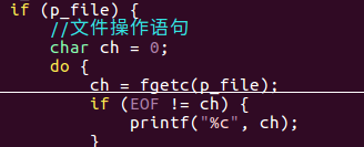 /*文件练习*/#include<stdio.h>int main(){FILE*p_file = NULL;p_file = fopen("a.txt","r");if(p_file){//文件操作语句char ch =0;do{ch = fgetc(p_file);if(EOF != ch){printf("%c", ch);}}while(EOF != ch);printf("\n");fclose(p_file);p_file = NULL;}return0;}