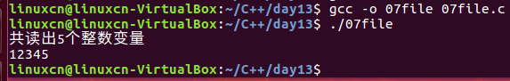 /*文件练习*/#include<stdio.h>int main(){FILE*p_file = NULL;int values[5]={0}, loop =0;p_file = fopen("a.bin","rb");if(p_file){//文件操作语句int num = fread(values,sizeof(int),5, p_file);printf("共读出%d个整数变量\n", num);for(loop =0; loop <=4; loop++){printf("%d ", values[loop]);}printf("\n");fclose(p_file);p_file = NULL;}return0;}