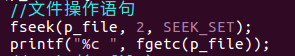 /*文件练习*/#include<stdio.h>int main(){FILE*p_file = NULL;p_file = fopen("a.txt","r");if(p_file){//文件操作语句fseek(p_file,2, SEEK_SET);printf("%c ", fgetc(p_file));//rewind(p_file);fseek(p_file,1, SEEK_CUR);printf("%c ", fgetc(p_file));//rewind(p_file);fseek(p_file,-3, SEEK_END);printf("%c ", fgetc(p_file));printf("\n");fclose(p_file);p_file = NULL;}return0;}