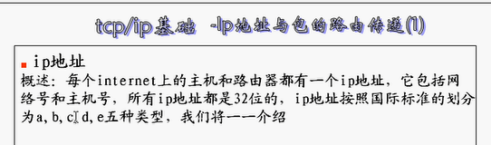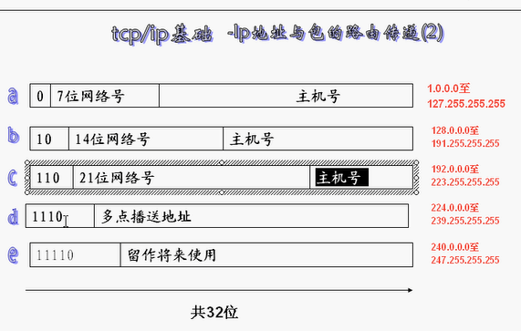 概述:每个internet上的主机和路由器都有一个ip地址,它包括网络号和主机号,所有ip地址都是32位的,ip地址按照国际标准的划分为a,b,c,d,e五种类型。