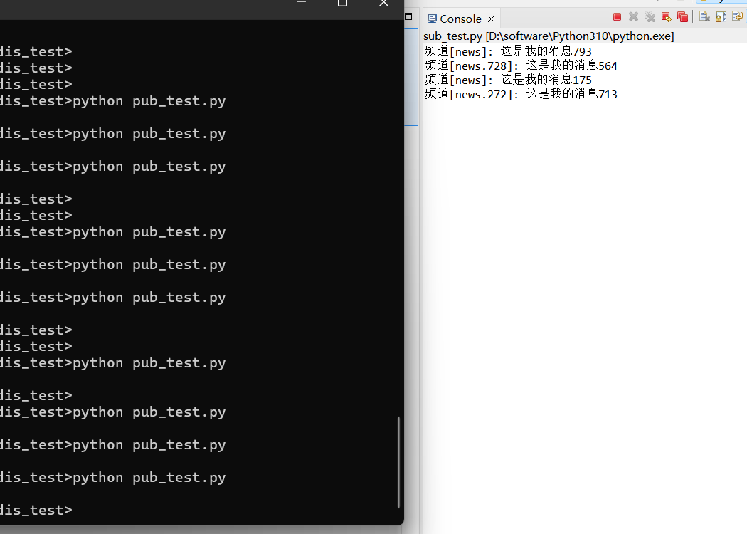 import redis from redis import Redis, ConnectionPool import random # 连接到Redis if 0: r = redis.Redis(host='localhost', port=6379, db=0) else: pool = ConnectionPool(host='localhost', port=6379, db=0, max_connections=10) r = Redis(connection_pool=pool) # 发布消息到频道 r.publish('news', '这是我的消息%s' % random.randint(1,999)) r.publish('news.%s' % random.randint(1,999), '这是我的消息%s' % random.randint(1,999))