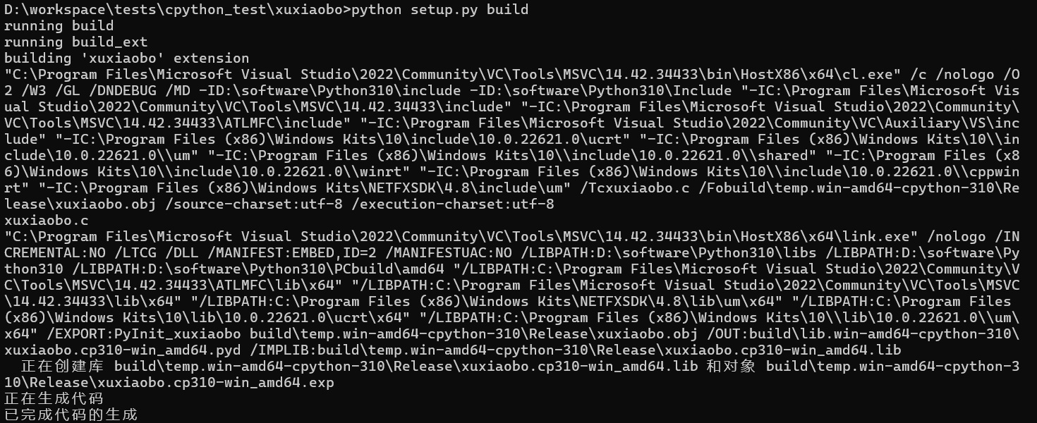 my_module = Extension('xuxiaobo', sources=['xuxiaobo.c'], extra_compile_args=['/source-charset:utf-8', '/execution-charset:utf-8'])