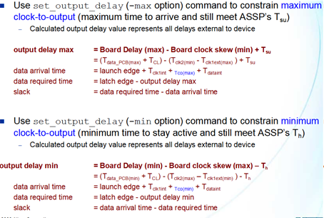 set_output_delay - clock clk_out -max tsu_f -clock_fall -add_delay