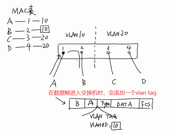 ①图中A,B,C,D均为MAC地址