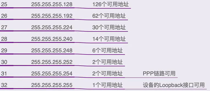 3.常见的子网划分对应关系