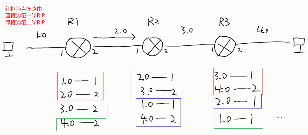 ②因为直连路由的优先级,所以R2不会学习来自R1的2.0——2,其他的同理