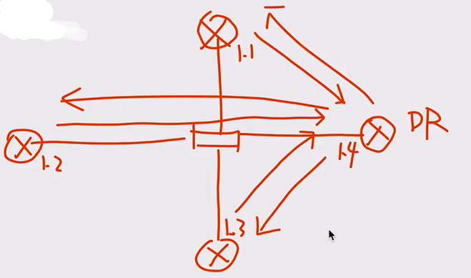 ④选举出DR后,先是所有路由器将自己的路由信息发送给DR再由 DR发送给其他路由器