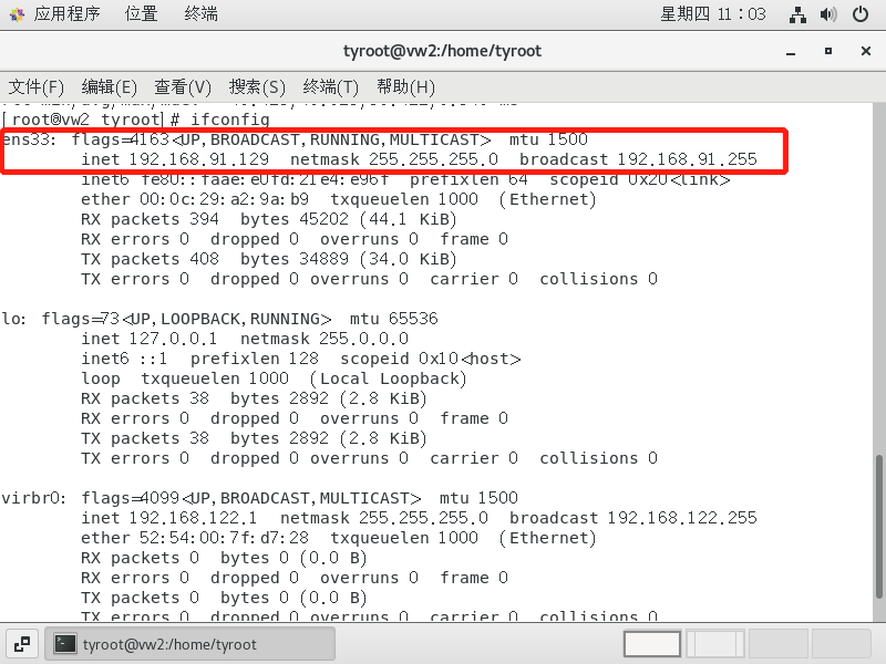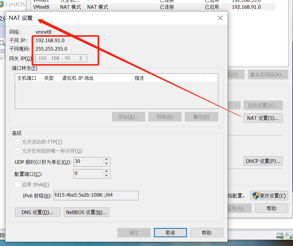 指定一个该网段(示例为192.168.91)内的IP作为虚拟机IP地址 ,例如我们现在选择192.168.91.100作为虚拟机IP,下面进入虚拟机对应目录配置对应参数