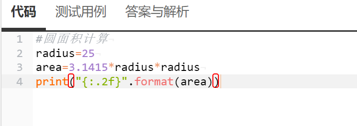 根据圆的半径计算圆面积,半径为25。请编写并运行如下代码: