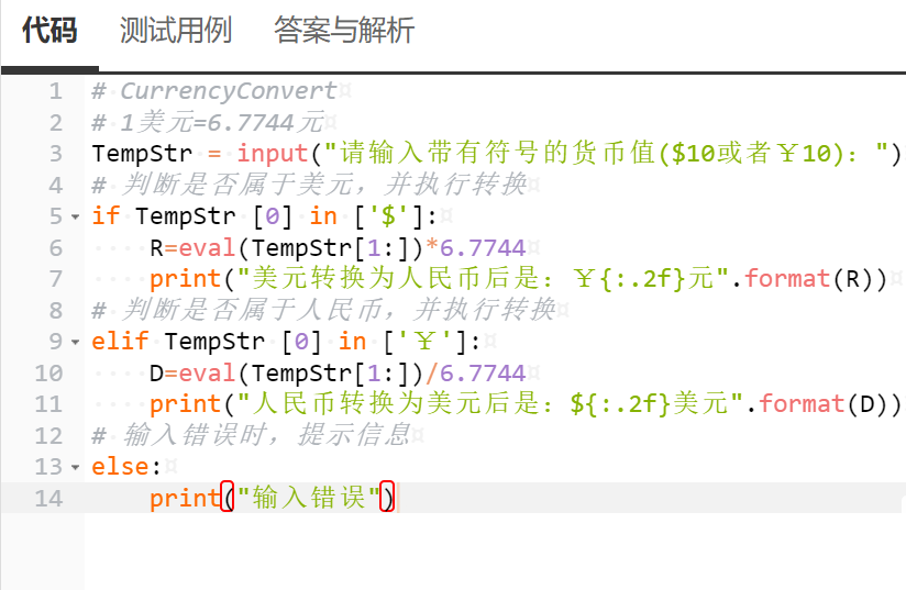 例1: 输入一个美元货币值:$32.3 ,当输入美元时,返回“美元转换为人民币后是:¥32元”