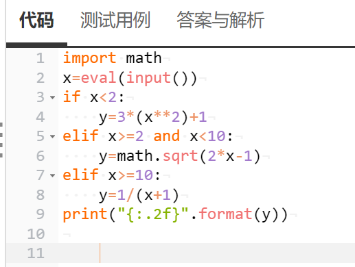 从键盘输入x的值,根据公式计算并输出x和y的值