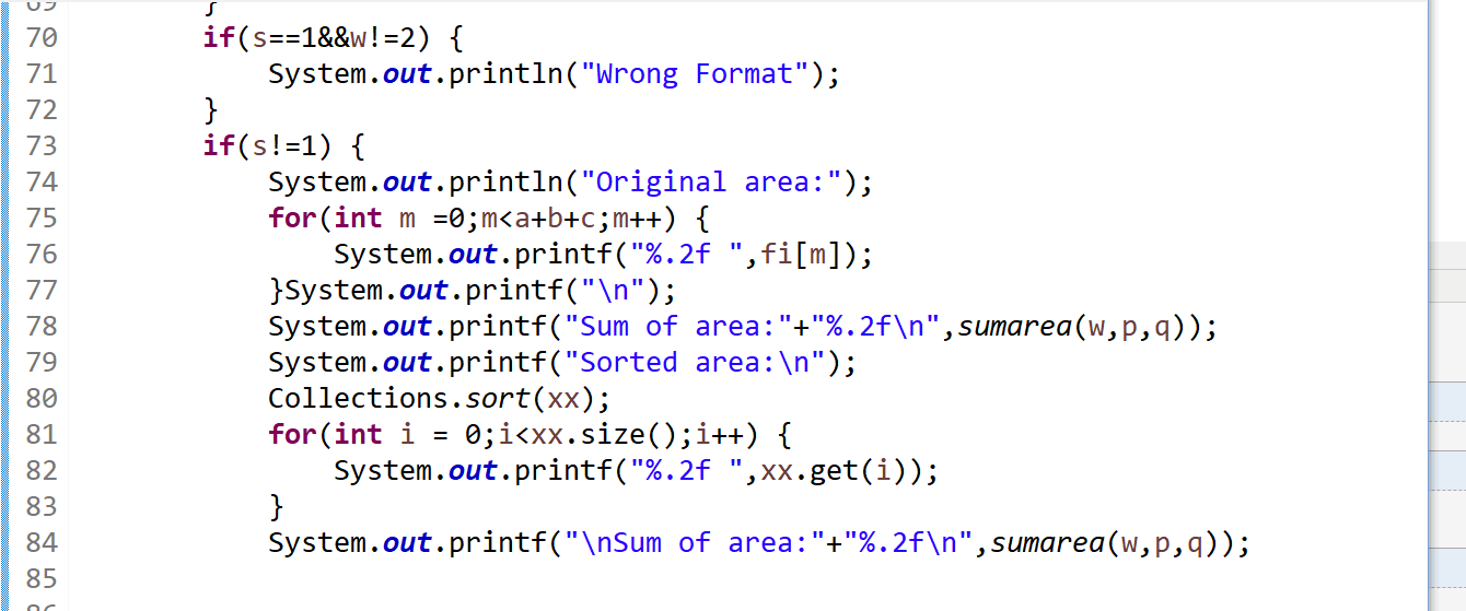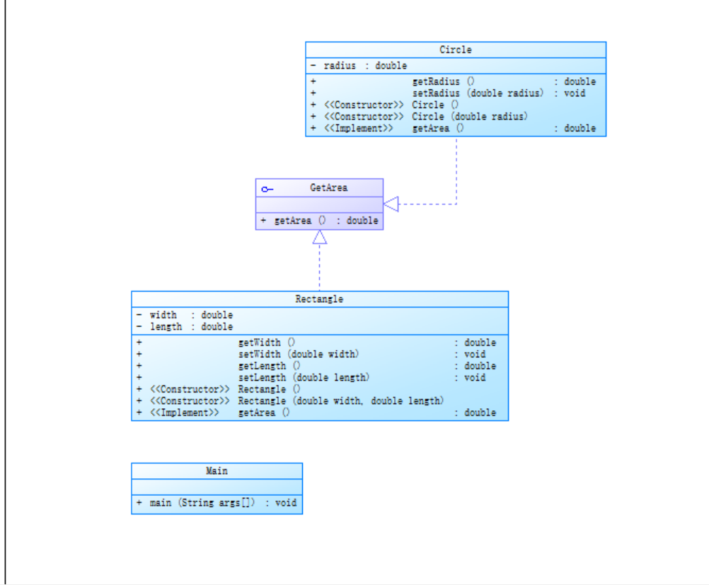 这题主要是主类的难度,像Shape类和Shape类的继承,要用到ArrayList<Double> xx = new ArrayList<Double>();来获得面积数据,再使用collections.sort(xx)来对xx中数据排序,并且用xx.add(circle.getArea())等来向链表中添加面积数据,再用for循环加上xx.get(i)来输出排序后的数据。