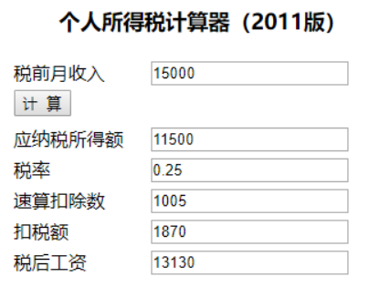我们需要通过 选择结构 来计算个人所得税,最终页面效果如下