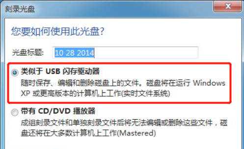 2.然后会弹出你将如何使用此光盘,选择“类似USB闪存驱动器”