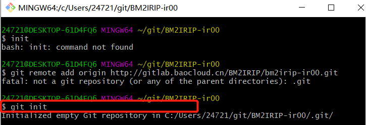 在Git Bash中进入工作目录或者直接在工作目录右击,选择
