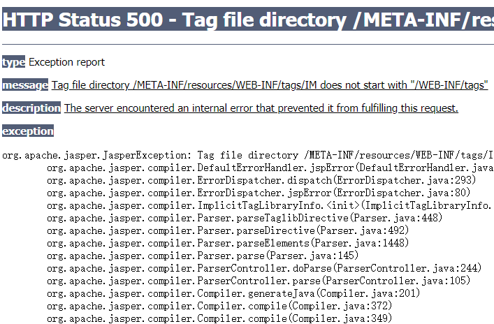 HTTP Status 500 - Tag file directory /META-INF/resources/WEB-INF/tags/IM does not start with "/WEB-INF/tags"