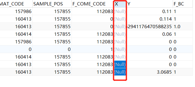 让我疑惑的事情发生了,tmd查询结果"X"那列竟然为空(查询的表中这列数据是不null的)