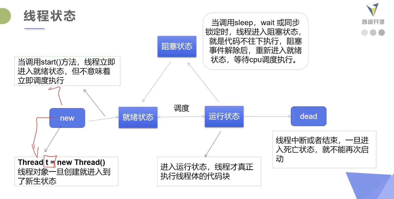 线程开启不一定立刻执行,由cpu调度执行