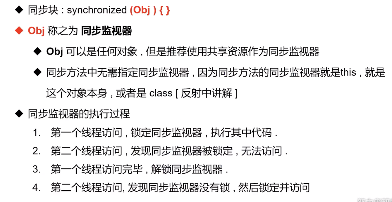 - 每一个对象都有一个锁,sleep不会释放锁