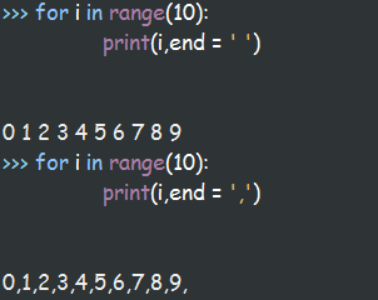 print中的end参数控制输入的数据用什么间隔,默认值是’\n’,将其的值改成别的符号,就能控制输出数据的分隔符号