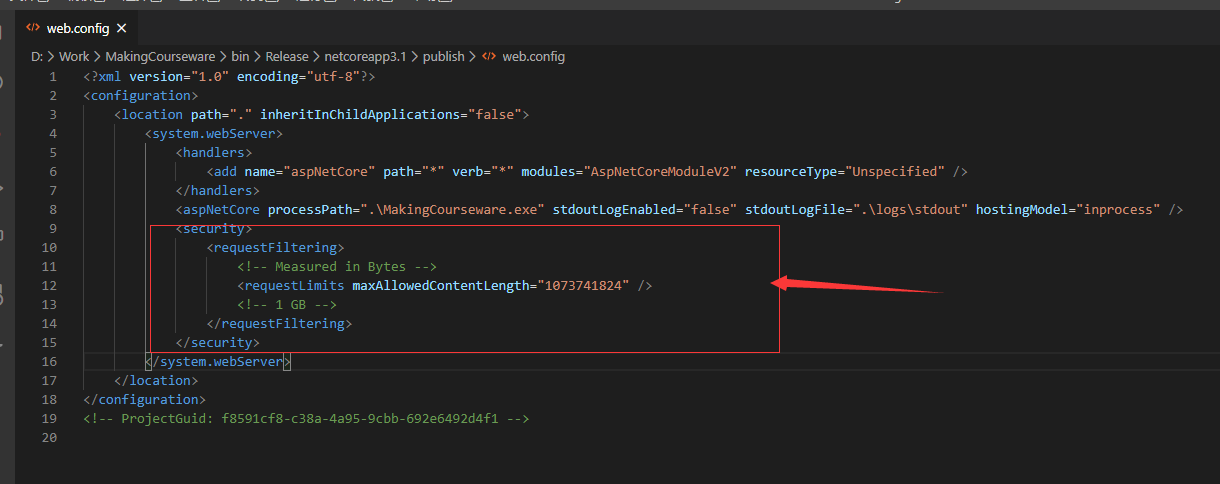 部署在windows iis 上,上传大一点的文件出现413 错误