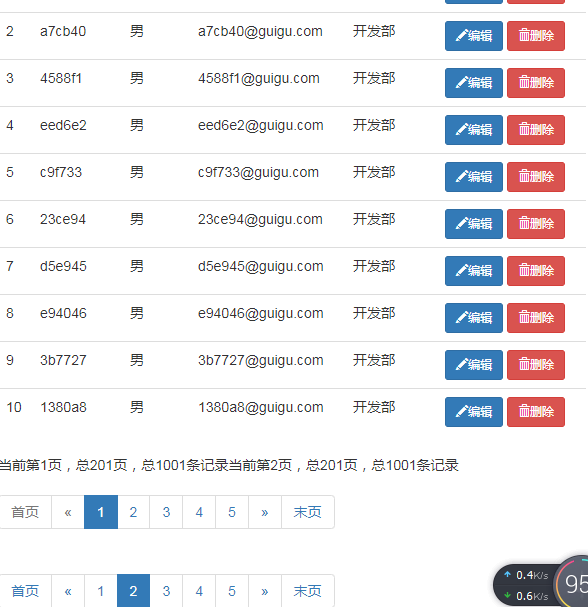 点击不同的页面就不会将所有数据显示在一张表格中了。