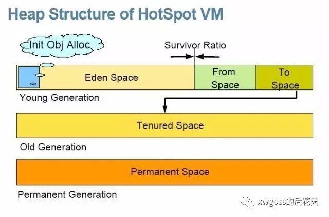 上图就是JVM的分代模型,JVM根据Object的生命周期长短,将其分为上述的三个层次(也称代)。不同的层次,其GC(收集回收)算法不一样