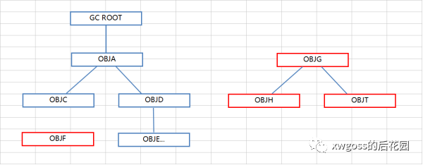 所有的Java对象构成一颗近似“搜索树”的结构,有一个root根节点,每次从root出发向下搜索,当整个树遍历完成后,那些不在其中的变量则视为"垃圾"。