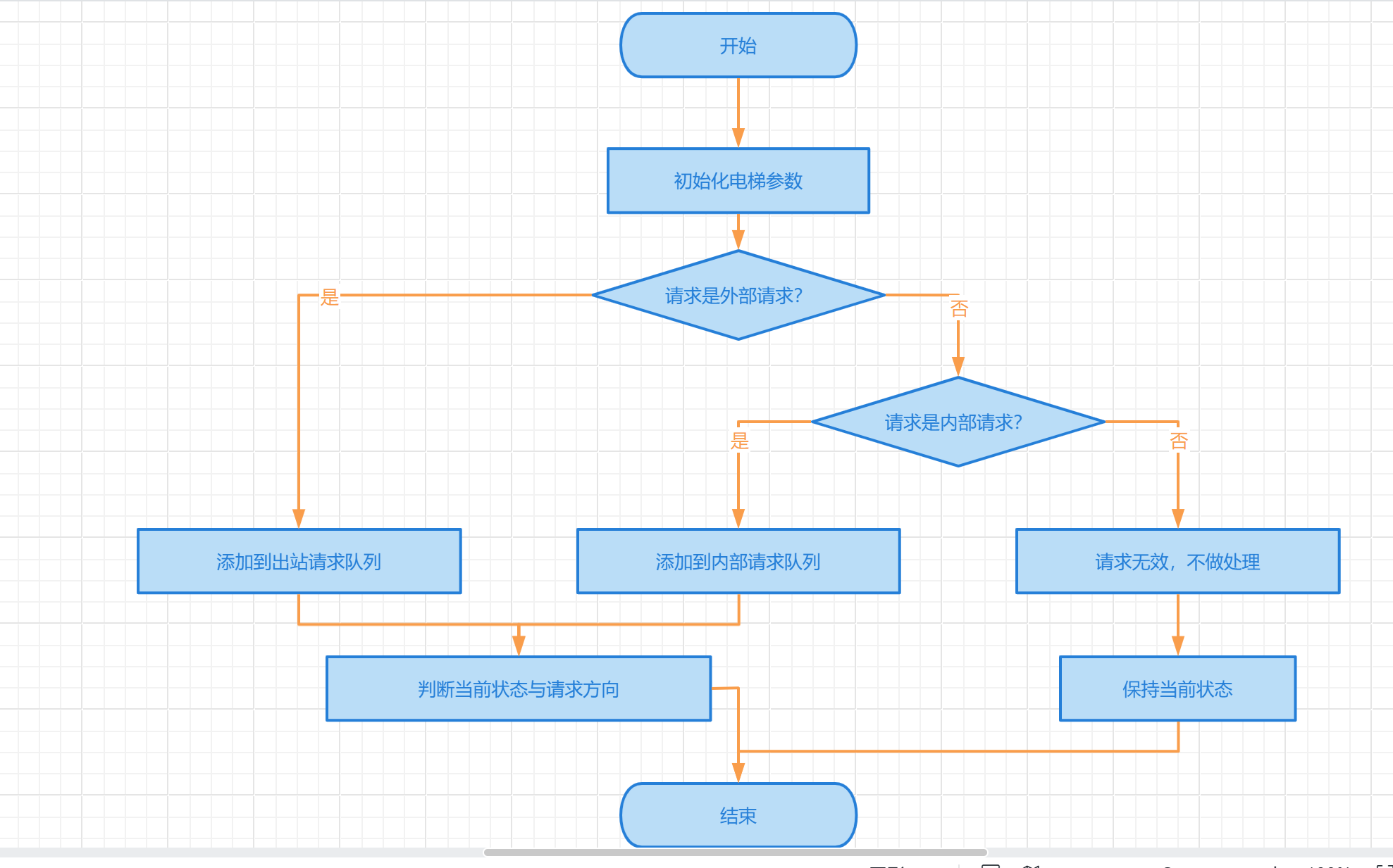 考虑到电梯运行方向问题,我设置了向上和向下两个队列,并使用了正则表达式来判断请求应该进入哪个队列,最后处理队列中的所有请求。
