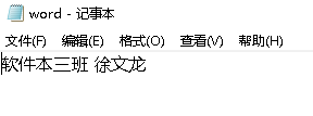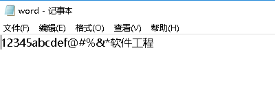 import java.io.*; import java.nio.Buffer; public class Demo1 { public static void main(String[] args) { File file = new File("word.txt"); try { file.createNewFile(); FileWriter out = new FileWriter(file); BufferedWriter bw = new BufferedWriter(out); bw.write("12345abcdef@#%&*软件工程"); bw.close(); out.close(); } catch (IOException e) { // TODO Auto-generated catch block e.printStackTrace(); } } }