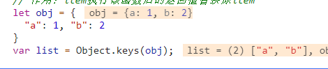 let obj = { "a": 1, "b": 2 } var list = Object.keys(obj);