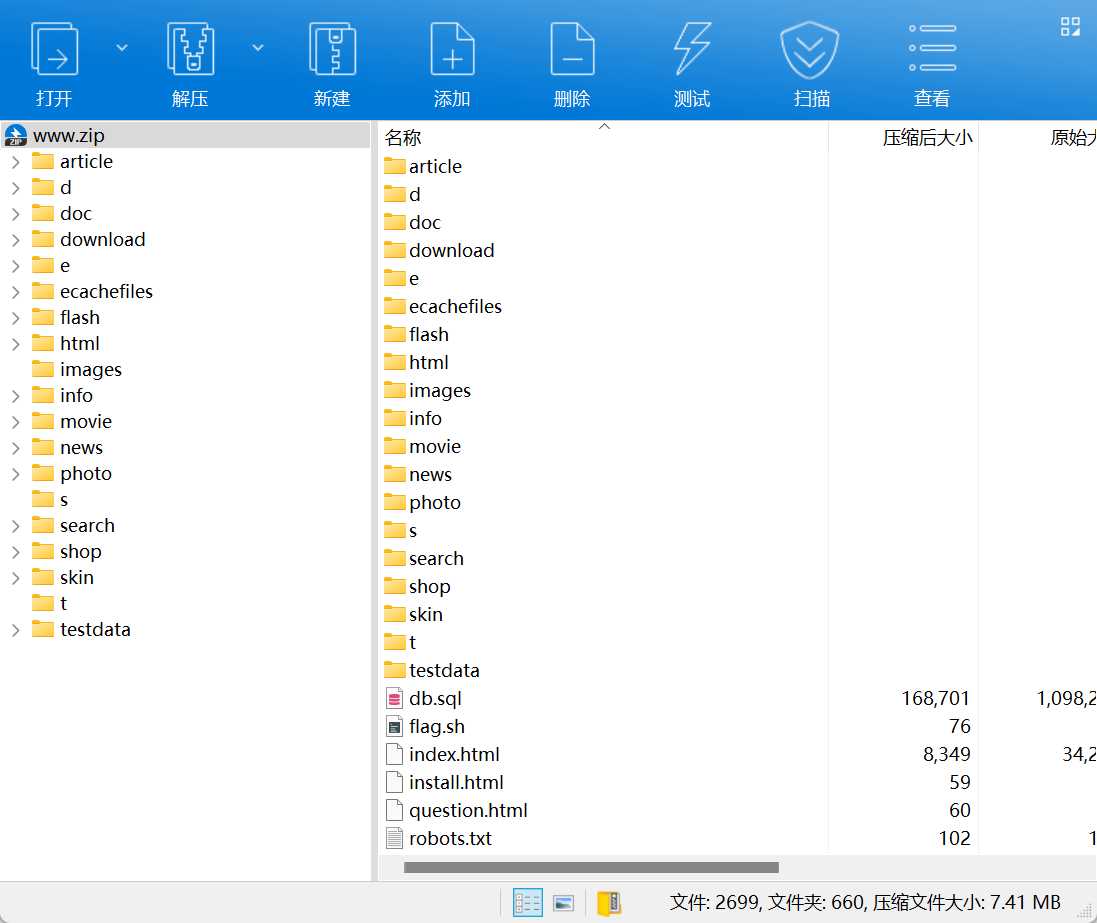 我们去访问它,然后就下载了一个www..zip的压缩包