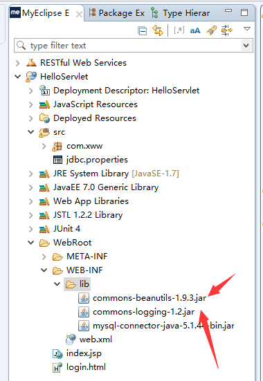 现在我们导入 beanutils.jar 包和一个依赖的 loggin.jar 包: