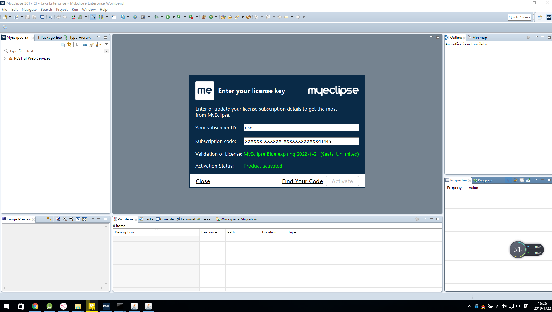 在破解过程中,请将MyEclipse先关闭,破解完后打开MyEclipse,查看是否破解成功。工具栏->help->subscription information