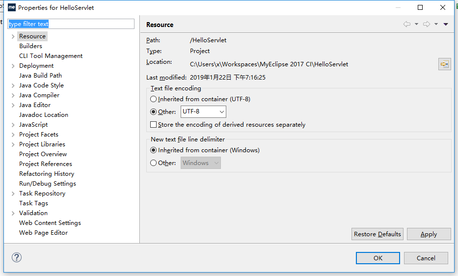 右键 Project -> 属性,把资源编码也修改为 utf-8