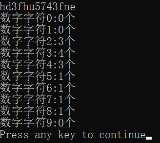 printf("数字字符%d:%d个\n",i,cnt[i]);