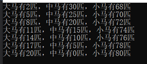printf("大马有%d匹,中马有%d匹,小马有%d匹\n", a, b, c);