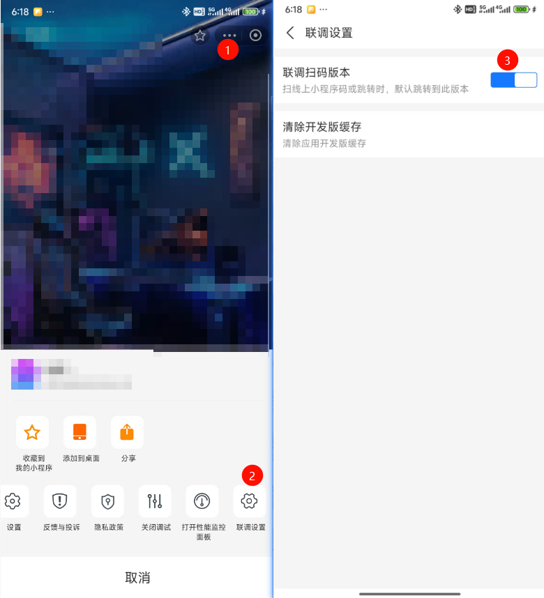 - 支付宝小程序可以通过手动开启联调让小程序热启动来实现跳指定版本