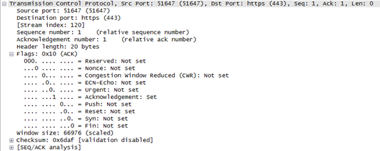 Sequence Number:0 序列号用来标识TCP源端设备向目的端设备发送的字节流