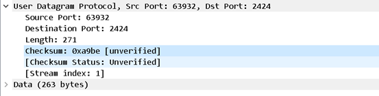 Checksum=0x4d52[correct]、Checksum=0x5552[correct] (数据报的校验和, 检验报文在传输过程中是否出现了差错);