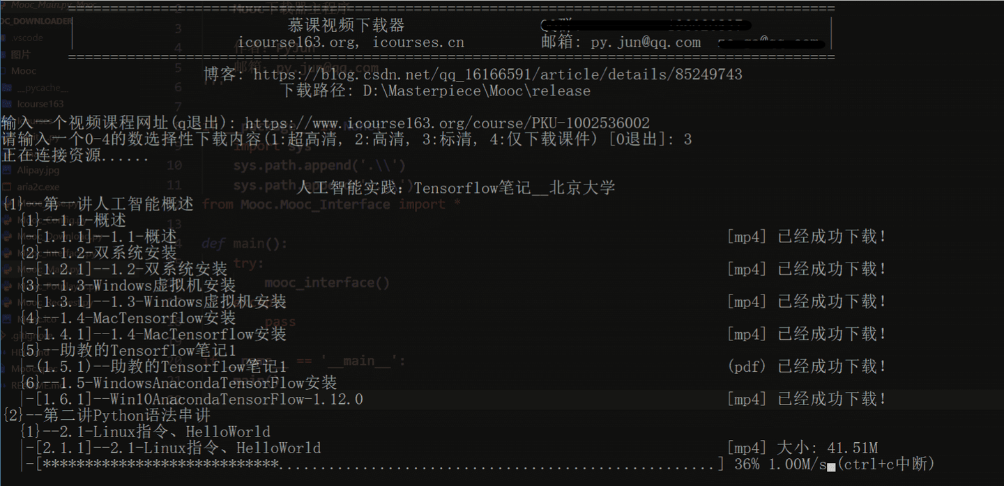 - Icourse163_Mooc.py 中国大学慕课下载器得子类,继承自 Icourse163_Base.py