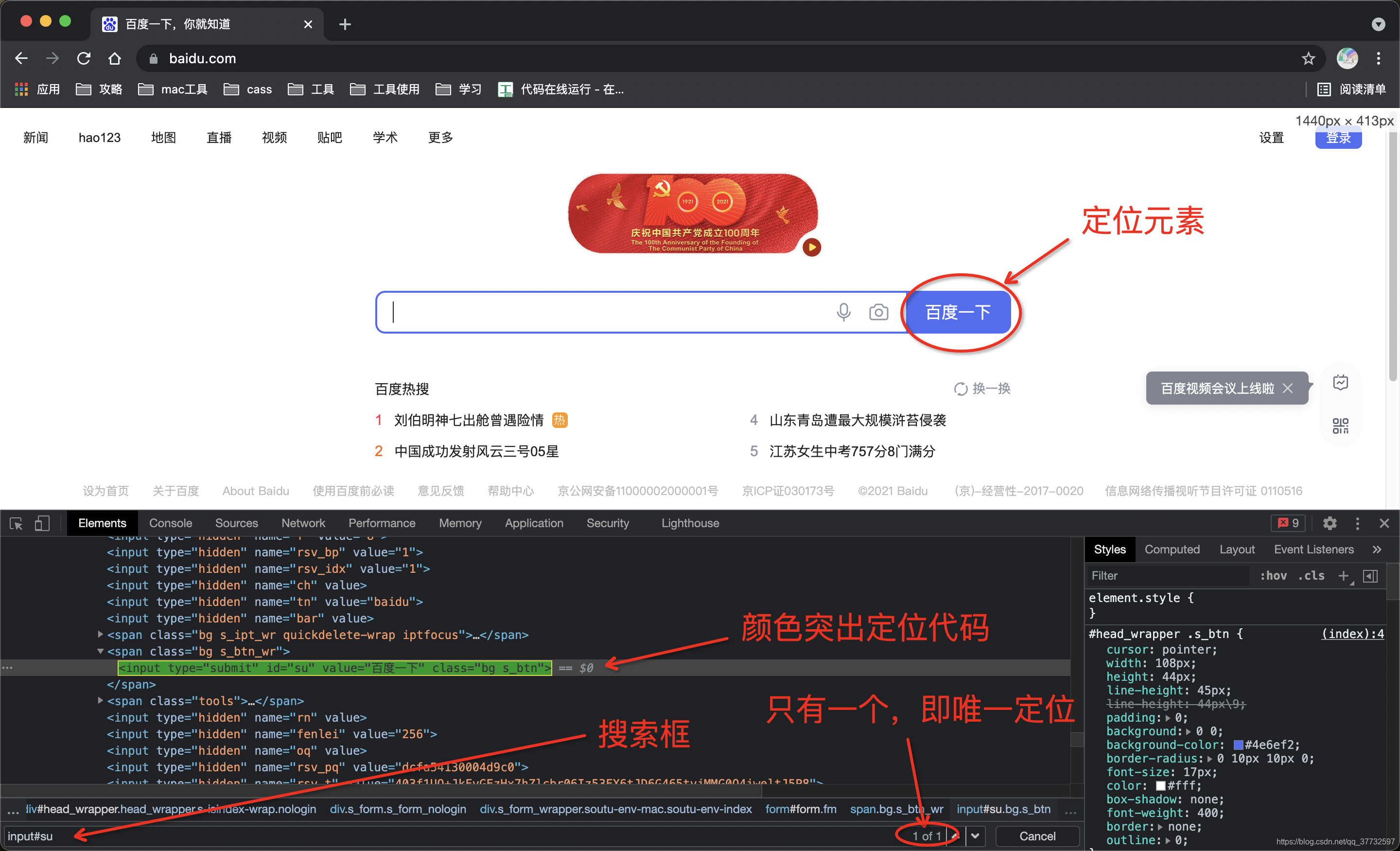 网页按F12可调出网页代码,点击代码窗口按control+F使用代码查找框,可输入id,css,xpath定位元素