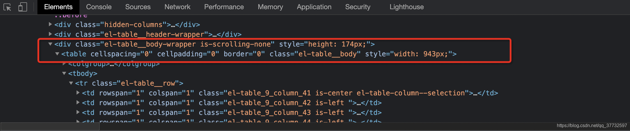 - css定位:div.el-table__body-wrapper.is-scrolling-none>table.el-table__body